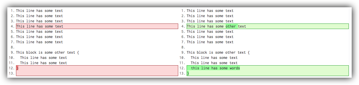 Diff does not track the block-level differences, only contents.
